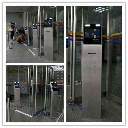 现场设有三台海鑫立式身份核验设备,该设备适用于需要人证同一性验证的领域。